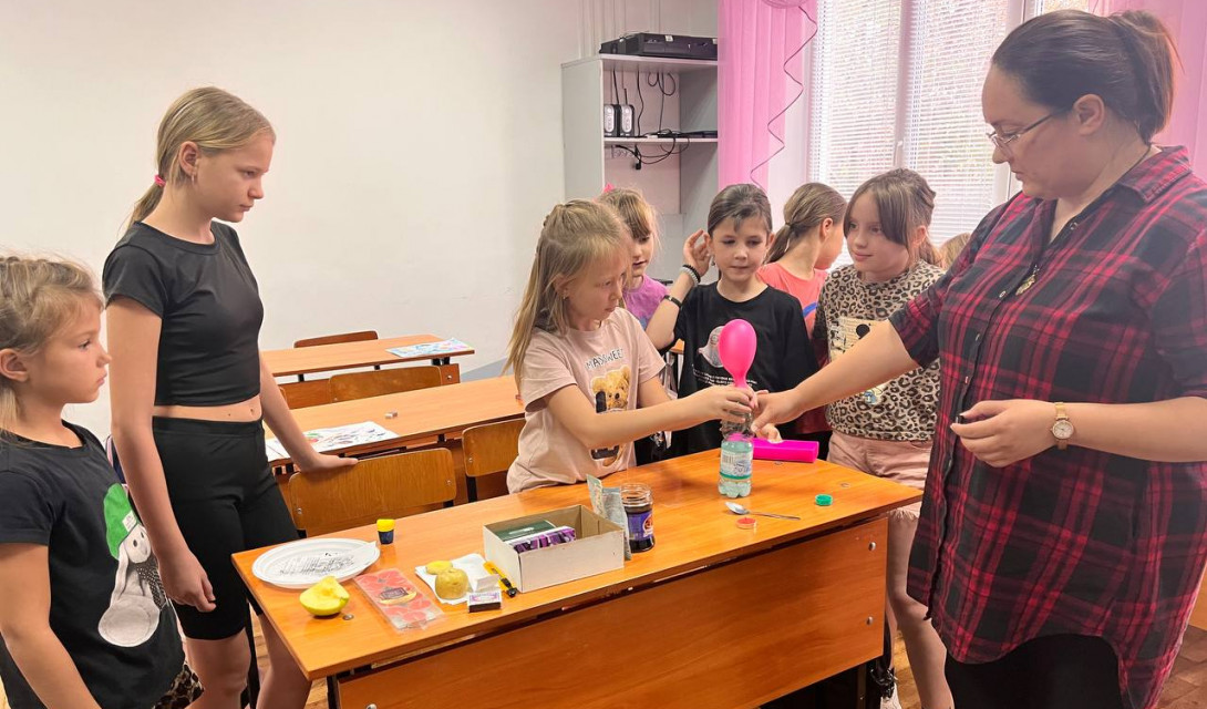 В филиале «Отделение дневного пребывания несовершеннолетних» 9 октября прошло увлекательное мероприятие, посвящённое 140-летию со дня рождения одного из основателей современной физики — Нильса Бора. Прикоснуться к миру науки помогла настоящая детская лаборатория. Ребята на время стали исследователями и провели несколько экспериментов из серии «домашняя химия»: с помощью обыкновенного йода они выявили невидимый крахмал, содержащийся в картофеле; увидели, как активированный уголь очищает мутную йодированную воду, познакомившись с основами фильтрации. Самым ярким стал опыт с воздушным шариком, надутым благодаря химической реакции уксуса и соды. Дети с восторгом наблюдали, как углекислый газ заполняет шарик. Завершилось занятие эффектным опытом с «фараоновыми змеями», которые вырастали, как по волшебству, из безобидной порошковой смеси. Мероприятие прошло в атмосфере живого интереса, искреннего восторга и любопытства. Ребята не только весело провели время, но и получили первые представления о химических реакциях, пройдя путь настоящего учёного — от гипотез до эксперимента.