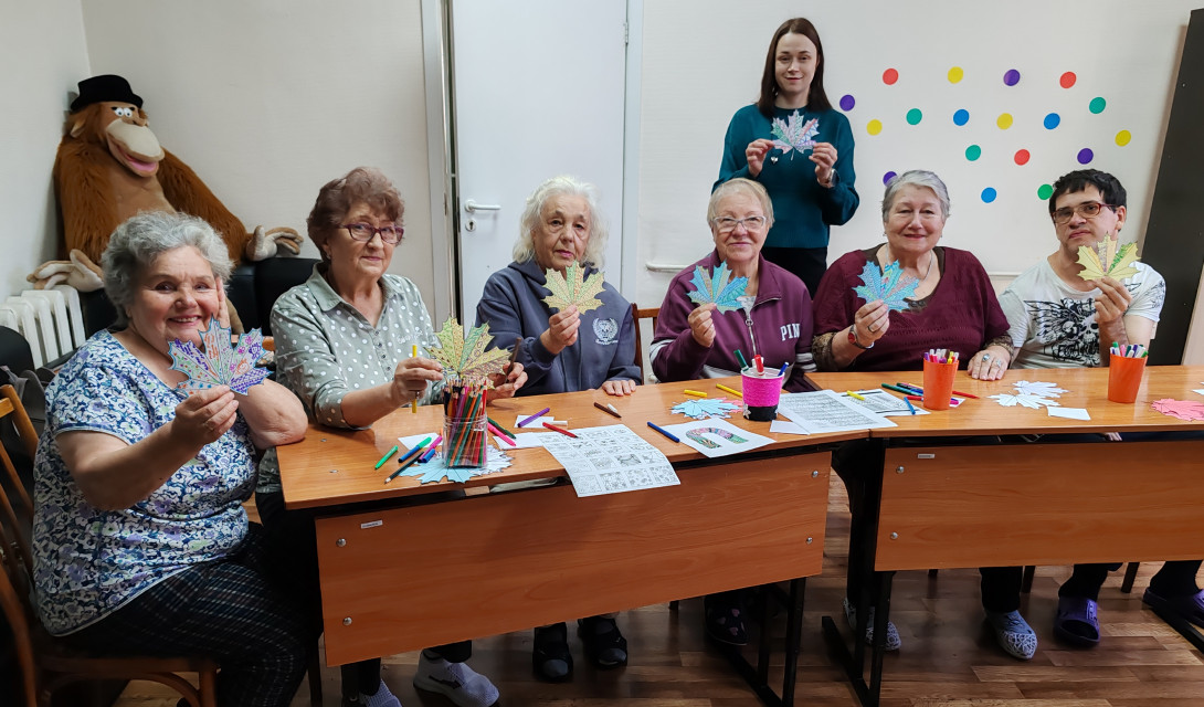 На занятии граждане пожилого возраста и инвалиды делились яркими воспоминаниями молодости, интересными историями и личным опытом занятий художественным творчеством и рукоделием. Проявив фантазию, каждый участник создал собственный неповторимый листик, украшенный геометрическими элементами.